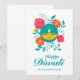 Cartão de saudação Diwali personalizado com flores e luzes diya