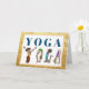 Este é um cartão divertido para enviar para o seu professor de yoga, ou colegas de classe yoga. Apresenta 4 gráficos de mulheres em diferentes posições de ioga que formam as letras Y - O - G - A contra um fundo de ouro. A saudação e observação do dentro pode ser alterada ou removida para que você possa usar este cartão para qualquer fim que você quiser se você não quiser usá-lo para o Dia Internacional do Ioga, que é 21 de junho. (Alguns o chamam de Dia Mundial do Ioga) Projetado por Sheila Cicchi, Brownielocks.com. Todos os Direitos Reservados.