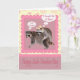 Deseje a uma solteiro feliz Dia Sadie Hawkins com um adorável guaxinim fêmea vestindo uma palha que pegue um guaxinim masculino bonitinho em um bonito quadro rosa. O fundo é decorado com um padrão cardíaco.