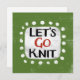 "Knit de Vamos" é um design de texto bonito com forma de sotaque branca cercado por pontos brancos texturizados.