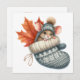 Cartão de saudação do mouse no outono.. FELIZ DIA DE AGRADECIMENTO NO verso da placa