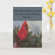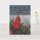 Meu cartão de saudação do "Rei Cardeal" é uma bela foto desse pássaro orgulhoso empoleirado em uma árvore com galhos. As cores vermelho e verde são elogios, e funcionam bem nesta pintura aquarela que eu criei. Caption dentro é uma oração que celebra a beleza da criação.