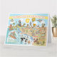 Cena brilhante e encantadora - uma vista divertida do mapa do desenho animado do sul da Califórnia - personagens charmosos desfrutam do sol quente da Califórnia exibindo Los Angeles, San Diego, Anaheim, Primaveras de Palm - Anza Borrego Desert State Park e Joshua Tree National Park também são apresentados, assim como as cidades fronteiriças de Tijuana e Mexicali, no México.