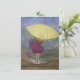Este cartão de saudação alegre do "dia chuvoso" pode ser dado em várias ocasiões. O otimismo desta imagem mostra uma jovem mulher, segurando um guarda-chuva amarelo brilhante e saltando propositadamente na água da chuva. Um cartão de nota pessoal de excelente, um cartão de encorajamento, ou pensar em você saudando.