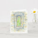 Cartão de saudação dobrado com a repro da cor d'água original da janela interior da pedra medieval