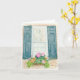 Cartão de saudação dobrado com a repro do trabalho de arte de cor d'água original da caixa de flores e da janela em Charleston, Carolina do Sul