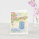 Cartão de saudação dobrado com a repro do trabalho de arte de cor d'água original da cabana inglesa com flores. Mensagem de vazio.