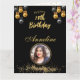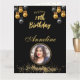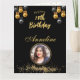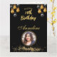 Cartão de Saudação Dobrado de aniversário de foto preto e dourado elegante