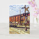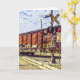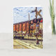 Um comboio de mercadorias numa ferrovia cobrir a frente deste cartão de saudação dobrado.