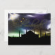 Belo cartão de boas-vindas para o Ramadã e os dias de Eid al-Fitr e Eid al-Adha com um contorno da mesquita negra e um belo céu noturno. Adicione este cartão a um dos nossos presentes islâmicos e crie um belo presente!