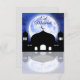 cartão de saudação eid mubarak com imagem de mesquita ao luar