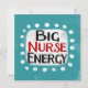 "Big Nurse Energy" é um design de texto bonito em azul com texto preto e vermelho, junto com uma forma de sotaque branca e pontos brancos texturizados ao seu redor.