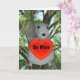 O esquilo das cinzas apresenta um coração ao leitor. O esquilo é criado em crochê. O fundo é uma árvore ramificada com musgo. O texto da dentro diz "Quero compartilhar meu mundo com você" "Feliz Dia dos Namorados!".