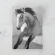 Um lindo garanhão Lusitano desce de um grande salto em uma arena de tourada em Portugal. Este é um Cartão de Saudação Salva Cavalos Selvagens.