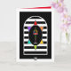 Esta menorah abraçada no arco-íris dentro de uma Estrela de David igualmente colorida sobre um campo estriado, preto-e-branco é atraente para os olhos e classe. O cartão interior diz Shalom em inglês e hebraico e é bordado e coordenado para o seu prazer escrevendo. Aproveite! ~ karyn