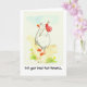 Um cartão de boas-vindas motivacional com um ganso se posicionando em uma jornada com seus pertences amarrados em um lenço vermelho e branco, de pintura aquosa de Judy Adamson. O texto é "Põe o teu melhor pé para a frente" e a dentro é vazio para que acrescente a tua própria mensagem.
