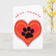 A pata é impressa no centro de um coração vermelho tridimensional. O texto diz "Com amor ... do seu animal de estimação" e pode ser mudado. Dentro é vazio.