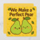 Celebre uma doce conexão com este adorável cartão de saudação "Fazemos uma pera perfeita"! Apresentando uma feliz dupla de pera sobre um fundo amarelo alegre, este trocadilho lúgubre é perfeito para aniversários, amizades ou qualquer pessoa que torne a vida um pouco mais brilhante. Excelente para aniversários, notas obrigado ou só porque.