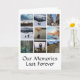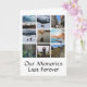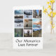 Este cartão de saudação atencioso inclui nove fotos em um layout de grade simples com texto editável, ou seja, título, ano ou mensagem na parte inferior em duas linhas convenientes. Clique em personalizar para adicionar suas fotos e cada foto se encaixará no lugar. Faz um presente maravilhoso para seu cônjuge, filhos, familiares, amigos, colegas de trabalho ou qualquer pessoa. Cor: Branco