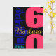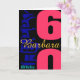 Cartão de Saudação de 60.º Aniversário personalizável com grande número (idade) e nome em cor rosa, azul escuro, amarelo-dourado e mint. Você pode facilmente alterar o texto (cor, fonte, tamanho e posição) clicando no botão personalizar. Estão disponíveis outros modelos. Correspondente ao 60º Aniversário do Livro de Convidados.