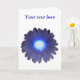 Este cartão de saudação bonito apresenta uma fotografia de uma flor de marigold que foi manipulada para criar uma flor bonita com um centro azul brilhante brilhante brilhante e delicadamente colorida que escurece e se torna quase negra nas bordas. Há um texto personalizável azul na frente do cartão, fazer que seja fácil personalizar este cartão para qualquer ocasião e para qualquer pessoa de sua escolha.