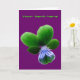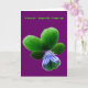 Este cartão apresenta uma fotografia de uma flor de Pansy selvagem. A foto foi colorida artificialmente, resultando em um pansy com tons claros e escuros de verde e um centro azul pálido. O fundo é roxo para mostrar a beleza desta flor ao máximo. Há um texto verde personalizável acima do pansy, na frente do cartão, fazer este cartão adequado para qualquer ocasião.