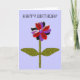 Este belo cartão floral apresenta uma imagem digital de uma margarida com um caule verde com duas folhas verdes e pétalas roxas, vermelhas e pretas com um centro roxo. As pétalas parecem feitas de plástico brilhante que pegou a luz e causou um efeito iridescente. O fundo é uma cor azul calmante. O texto da frente diz feliz aniversário, mas é personalizável para que você possa adaptá-lo para outras ocasiões especiais também. O dentro da placa foi deixado vazio para que você possa adicionar sua própria saudação especial. Para fazer isso, basta clicar no botão "personalizar". Aqui você poderá adicionar seu texto usando várias fontes e cores. Você também pode alterar a cor de fundo da placa.