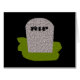 Este cartão de saudação apresenta uma tombstone de cinza com RIP em texto gotejando nele, em pé sobre um pedaço de grama verde. Ao lado dessa design mórbida, o fundo é preto. A dentro da placa é vazio, para que você possa escrever sua mensagem manualmente ou aproveitar o botão "personalizá-la". Ao clicar neste botão, você tem a opção de digitar seu próprio texto no cartão, com a liberdade de escolher entre muitas cores e fontes diferentes. Você também pode alterar a cor de fundo do dentro da placa, se quiser.