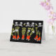 A placa apresenta uma linhagem sem graça de pernas de pata rolante em colheres listradas e skates de roletes vermelhos em um chão preto. Uma banda de crânios e abelhas assassinas completa o design desta carta divertida. Adicione seu próprio dentro de texto especial para torná-lo perfeito para qualquer ocasião, de aniversário a chá de fraldas.