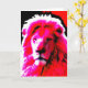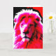 O Rei da Selva. Cartão de saudação com um impressão de tela retrô inspirou uma parte próxima da cabeça de leão em cores marcantes - rosa, vermelho, preto e branco. Um design personalizável para você personalizar com seu próprio texto, imagens e ideias. Criado com fotografias originais e efeitos digitais por Jess Perry.