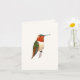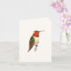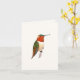 Cartão de saudação do vazio com um Hummingbird Rufous. Os beija-flores rufos são pequenos e pugnosos beija-flores que se destacam para o voo de dardos e para a manobrabilidade máxima. Eles passam os invernos no México e se movem para noroeste no início da primavera, principalmente através das terras baixas do Pacífico.