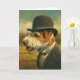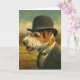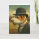 Este cartão é ilustrado com um dapper inteligente Jack Russell Terrier em um chapéu de boliche.