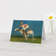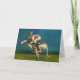 Este cartão é ilustrado com um coelho atleta montando um chicote.