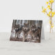 Um cartão de saudação é mostrado com uma impressão de foto de um bando de lobos selvagens. Dentro de vazio, personalize esta placa e adicione sua própria mensagem ou comprar especial como está. Imagem licenciada
