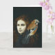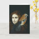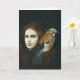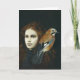 Este cartão é ilustrado por uma jovem vitoriana com um jay emperrado no ombro.