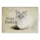 Um cartão com uma foto de um gato de trapo na frente. As palavras podem ser trocadas para se adequarem a qualquer ocasião.