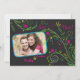 Personalize o texto e a foto neste cartão de anúncio de casamento com quadro-negro neon floral doodle para salvar a data do casamento. As cores são rosa neon, amarelo neon, azul neon e verde neon em um fundo carvão escuro. Que convite divertido para um casamento casual e fora do comum. Você pode alterar o texto e a foto com as opções de personalização. Para alterações mais extensas no cartão, incluindo alterar a fonte, cor da fonte, tamanho da foto, posicionamento da foto ou layout do texto, use a opção de personalização. Este é um cartão "save the date" fofo para um casamento menos tradicional. Eles seriam ótimos para um casamento que aconteça em um café descolado. Alguns produtos combinando que você pode gostar: