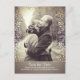 Cartão postal de save the date com foto e flores de bebê em folha dourada.