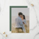 Um cartão moderno de save the date de casamento com foto, apresentando um layout elegante em verde-sageado combinado com um design de foto minimalista. Perfeito para casais que buscam uma estética refinada e contemporânea com um toque suave e romântico.