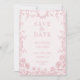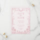 Cartão de Save the Date de Casamento em Azul Empoeirado com Floral Rosa