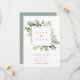 Este convite de save the date de casamento apresenta folhagem de eucalipto pintada à aguarela, folhas verdes e uma moldura quadrada dourada. Para personalização mais avançada deste design, clique no link "Personalizar ainda mais". Itens correspondentes também estão disponíveis.