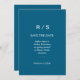 Anuncie seu dia especial com estilo com este "Cartão de Save the Date de Monograma Clássico Elegante Azul". Com um design azul atemporal e um monograma refinado, este cartão define o tom perfeito para o seu casamento. Ideal para celebrações formais, tradicionais e modernas, é totalmente personalizável para combinar com os seus detalhes únicos. Crie uma primeira impressão memorável com este cartão Save the Date sofisticado que combina elegância e charme.