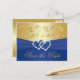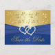 Este cartão postal de Save the Date de corações unidos florais azul real e dourado combina com o convite de casamento e outros itens mostrados abaixo. Se você precisar de outros itens correspondentes neste design, por favor envie um e-mail para o seu pedido para niteowlstudio@gmail.com.