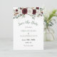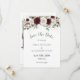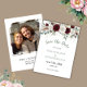 Anuncie seu casamento próximo com este lindo cartão de save the date que apresenta o mesmo design floral lindo em verde, burgundy e blush do que o conjunto de convites de casamento. A frente mostra um arranjo elegante de rosas burgundy profundas e rosas suaves com folhagens delicadas e acentos de grama pampas, enquanto a parte de trás apresenta a foto do casal favorito com um efeito de moldura pintada estilosa. Este design coeso garante que a papelaria do casamento conte uma história unificada desde o primeiro anúncio. O tema botânico romântico e a paleta de cores sofisticada criam a primeira impressão perfeita para o seu dia especial, definindo o tom para uma celebração elegante do seu amor.