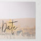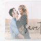 Capture a essência da sua história de amor com o nosso belo Casamento Personalizado de Foto Salve a Ficha de Datas com elegante tipografia de script. Este eterno e design personalizado serve como o prelúdio perfeito para o seu dia especial, permitindo que você compartilhe um vislumbre de sua alegria com os entes queridos. Esta opção salva a data apresenta uma saudação horizontal de fotos e scripts que abrange todo o fundo, fora desta placa tripla.