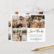 Orçamento, Moderno, Elegante, Casamento Com Mão (3) Cartões de agradecimentos De Colagem De Fotos. modelo de cartões de agradecimentos de casamento com três fotos na frente e uma foto na parte traseira. Com o texto "Amor e obrigados" em uma fonte de script tipográfico escrita, escrita à mão, com traços em preto sobre fundo branco. Um pouco de coração entre os nomes. Adicione seu nome personalizado e sua mensagem de obrigado. Se preferir escrever manualmente a sua nota, basta eliminar o texto de amostra para obter mais espaço.