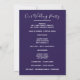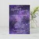 Adicione este Cartão de Serviço de Cerimônia de Casamento com Estrelas sob o Céu Noturno à papelaria do seu casamento. Concebido em tons claros e escuros de roxo com estrelas brancas, o texto inclui: Cerimônia de Casamento, os nomes da Noiva e do Noivo e a data do casamento, juntamente com a ordem do serviço. O texto no verso inclui: Nomes do seu cortejo. Para personalizar, basta inserir seus detalhes em nosso modelo fácil, substituindo o texto de exemplo. Certifique-se de ver a papelaria e os acessórios correspondentes a esta Coleção de Convites de Casamento Night Sky Starlight.