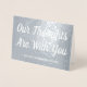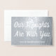 Esta simples folha prateada apresenta a mensagem "Our Thoughts Are With You" na frente, juntamente com uma mensagem personalizável no dentro. Um cartão como este poderia talvez ser utilizado para oferecer condolências aos familiares de alguém que morreu recentemente.