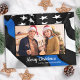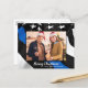Mande cumprimentos de Feliz Natal para amigos e familiares com este Cartão de Natal Único da Polícia da Linha Azul - Bandeira Americana em cores de bandeira policial, preto e azul moderno. Personalize com sua foto e seu nome favorito da família. Esses cartões postais de natal de alegria orçamentária precisam ser enviados como cartões postais de tamanho excessivo, de modo que possam implicar taxas de postagem padrão, mas eles não precisam de um envelope ou etiqueta de endereço de retorno. COPYRIGHT © 2020 Judy Burrows, Black Dog Art - Todos Os Direitos Reservados. Cartão-postal de Feriado de Bandeira Azul Fino da Polícia de Orçamento