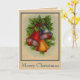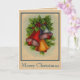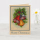 Este cartão de Natal tem sinos de Natal muito brilhantes e coloridos com azevinho e frutas. Uma pitada de neve torna este um cartão de férias festivo.